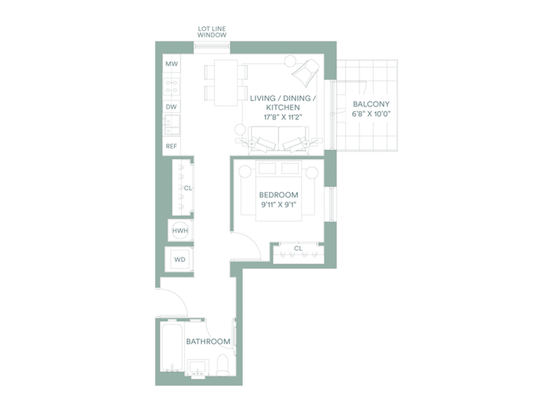 More than 13,000 square feet of additional amenities include a private off-street porte-cochere entrance leading to enclosed parking; a spacious, art-filled lobby attended 24/7; full-size indoor pool (39x13 feet) which opens to the courtyard; fitness center with state-of-the-art cardio and weight-training equipment and amble space for stretching and personal training sessions; library with books selected from the MoMA PS1 bookstore; lounge; party room; pet spa; stroller storage; and children's playroom. GALERIE will also feature secure bike storage; full-time live-in resident manager; an expansive landscaped rooftop replete with grilling stations, dining areas, and comfortable seating against a postcard-view backdrop of the Manhattan skyline. Rooftop cabanas will be available for purchase.